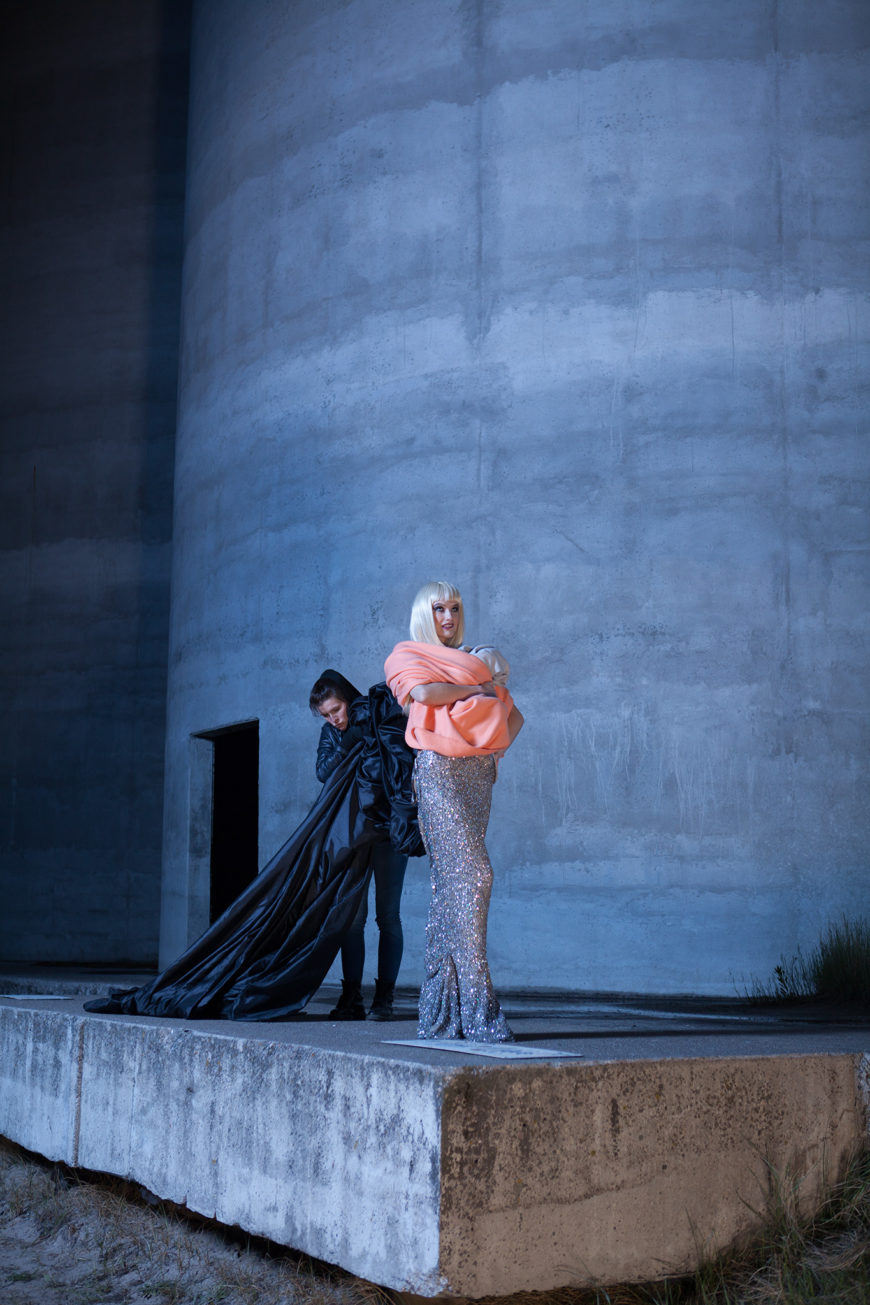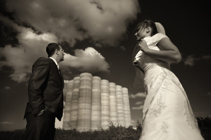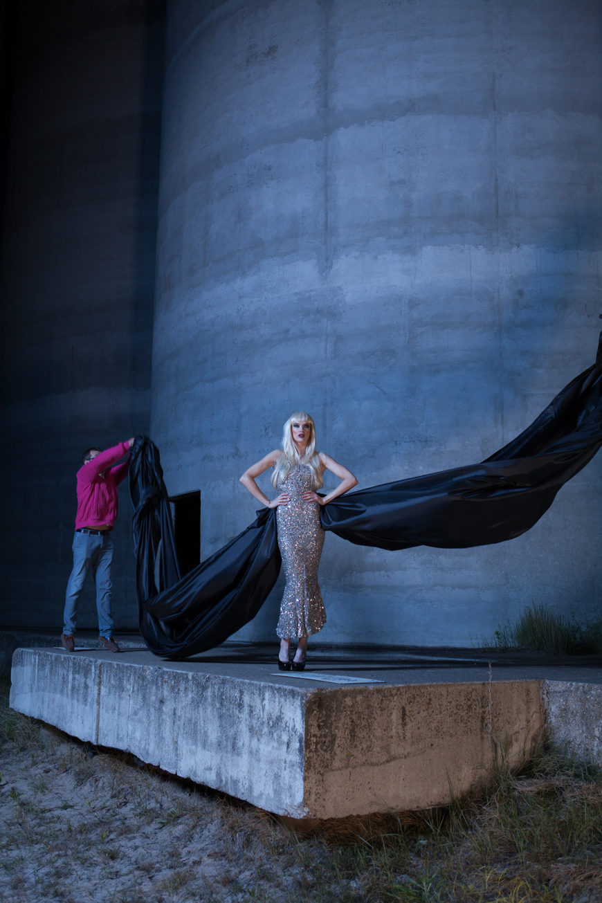 Znalezienie odpowiedniego miejsca w Gdańsku do zdjęć nie stanowiło żadnego problemu, ponieważ mam w swoich zasobach fotograficznych sporo zarejestrowanych podobnych architektonicznych rarytasów. Często fotografuję różne ciekawe miejsca z myślą o tym, że w przyszłości wrócę do nich z własnym pomysłem na sesję. Silosy zbożowe bo tak nazywa się ta surrealistyczna budowla już nie raz posłużyła mi jako tło do zdjęć.